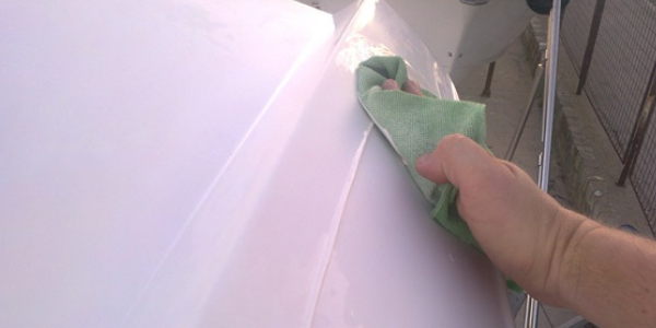 Rengør overfladen med Hempel's Boat Shampoo og rigelige mængder ferskvand for at fjerne støv og forurening, der kan forårsage ridser under poleringen.