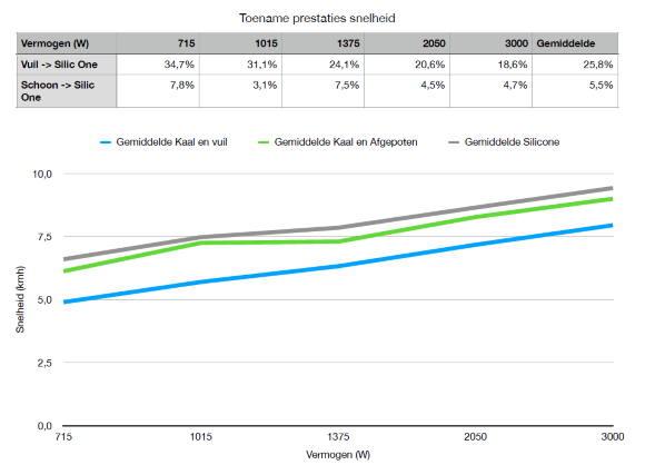 De resultaten laten duidelijk zien dat er een merkbare snelheidstoename is bij een gelijkblijvend stroomverbruik. Dit betekent dat u met Silic One ofwel sneller kunt varen met hetzelfde vermogen, ofwel minder vermogen verbruikt om dezelfde snelheid te bereiken als met een romp zonder coating. Natuurlijk weten we allemaal dat een romp zonder coating al snel vervuild raakt en ongewenste weerstand creëert, wat zeker voor elektrische boten geen optie is.